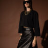 Add a touch of glamour to your wardrobe with this A line high shine skirt. Designed with a smooth finish it effortlessly combines elegance and versatility, perfect for night outing urban styling or luxury street wear.