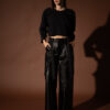 Elevate your contemporary wardrobe with these glossy cargo pants. Crafted from a lustrous fabric with tailored structure and elegant side pockets, they blend modern sophistication with a touch of urban allure, perfect statement dressing with effortless Polish.