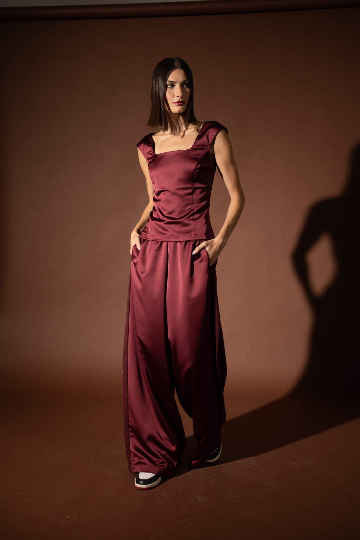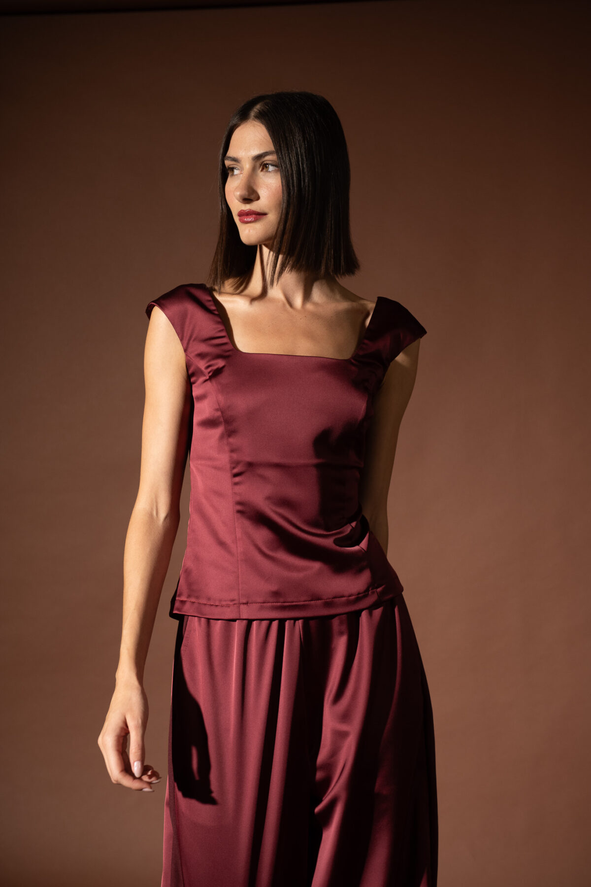 This satin top brings effortless sophistication to casual wear, it pairs comfort with a touch of luxury perfect for elevating both laid back and polished looks.