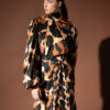 Make a statement with this luxurious satin midi dress, featuring a bold print pattern. Designed with a high neckline and long sleeves, it drapes beautifully on the body, offering both sophistication and comfort. The fluid satin fabric enhances movement, while the side slit adds a touch of modern allure. Finished with a self-tie belt to define the waist, this dress is perfect for evening occasions or elegant daytime looks.
