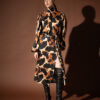Make a statement with this luxurious satin midi dress, featuring a bold print pattern. Designed with a high neckline and long sleeves, it drapes beautifully on the body, offering both sophistication and comfort. The fluid satin fabric enhances movement, while the side slit adds a touch of modern allure. Finished with a self-tie belt to define the waist, this dress is perfect for evening occasions or elegant daytime looks.