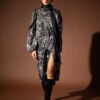 Make a statement with this luxurious satin midi dress, featuring a bold print pattern. Designed with a high neckline and long sleeves, it drapes beautifully on the body, offering both sophistication and comfort. The fluid satin fabric enhances movement, while the side slit adds a touch of modern allure. Finished with a self-tie belt to define the waist, this dress is perfect for evening occasions or elegant daytime looks.