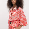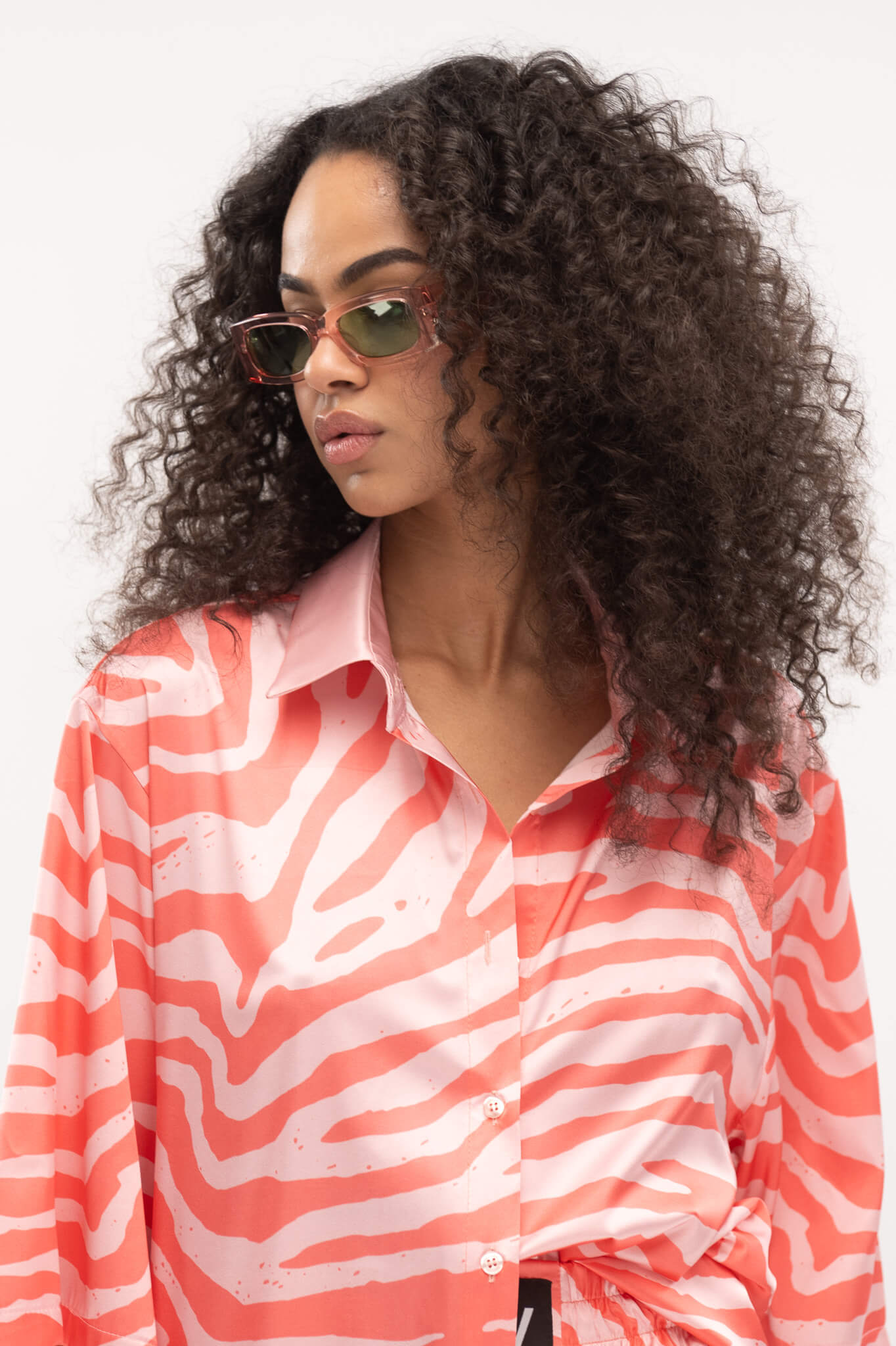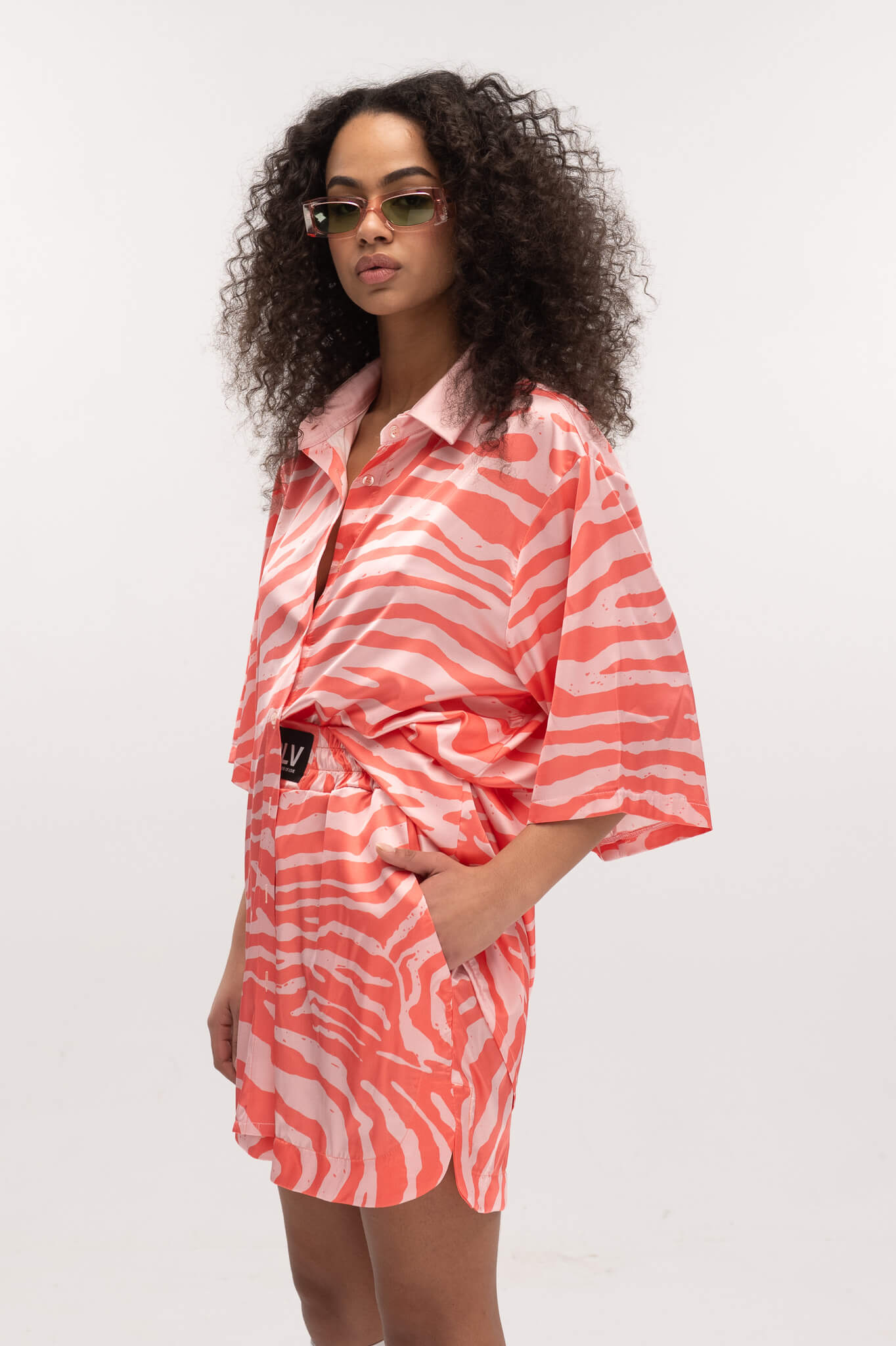 The lightweight satin shirt sleeved shirt may be paired with the matching shorts to complete the look